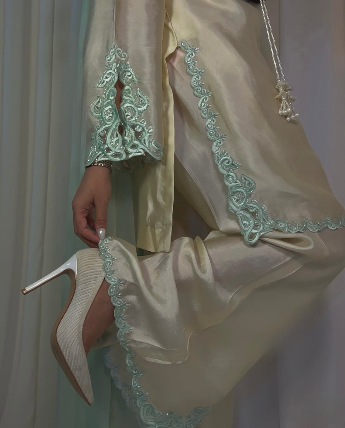 TROUSER: Pure sheesha silk fabric with matching elaborate work as shirt🌷